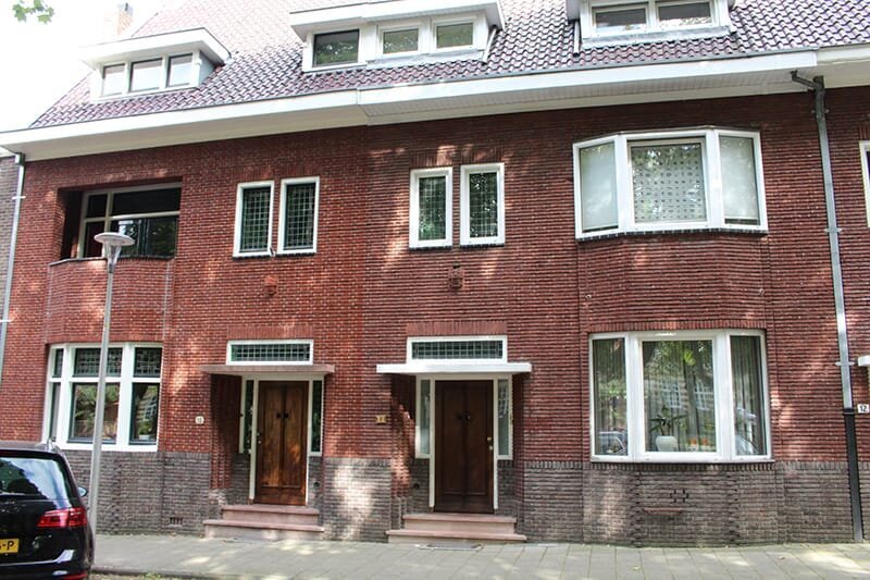 Deze rij panden bestaat uit vier bakstenen woonhuizen. Op het eerste gezicht lijken het drie naast elkaar gelegen rijtjeshuizen. Nader beschouwd is het derde huis een duplexwoning met twee voordeuren; één voor boven en één voor beneden. Na de oorlog werd dit type vaker gebouwd om twee (tijdelijke) kleine woningen later te kunnen veranderen in een grote woning.