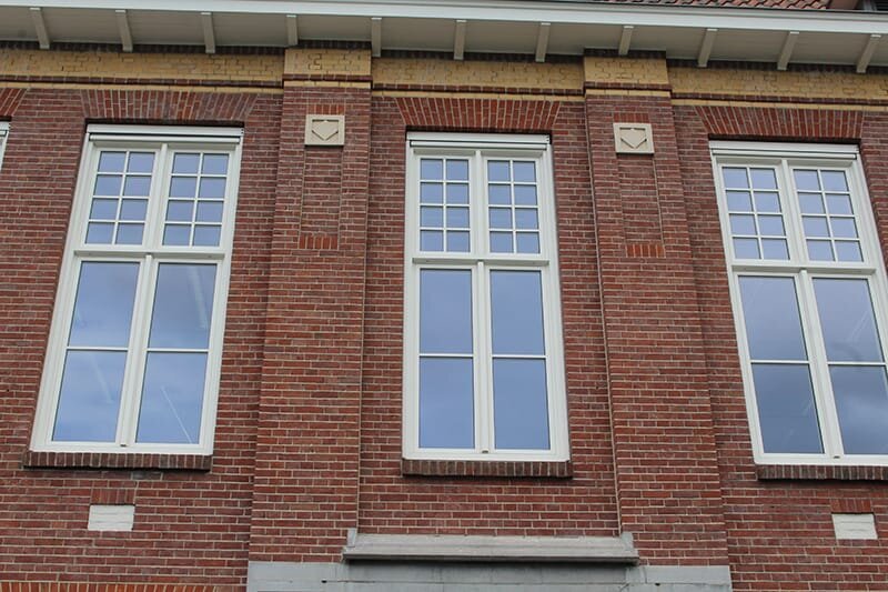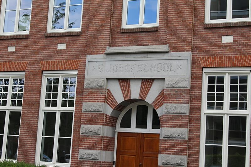 Bij de beide schoolgebouwen overheerst vooral de soberheid met een duidelijke indeling van de klaslokalen. De verfijning is te vinden in de versiering door terugliggende bakstenen en de hardstenen omlijsting rond de beide ingangsdeuren met de naam van de school erboven.