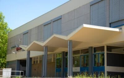 c. de achterbouw met kleed- en was- en verblijfsruimten voor sporters en leerlingen, EHBO- en massagekamer, beheerderskamer, ingang voor gebruikers.
