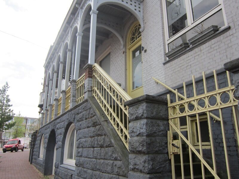 In 1961 is de versiering op de pilaren van het balkonhek op de tweede verdieping verwijderd.